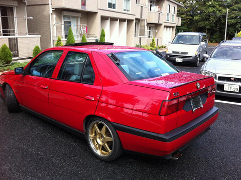 This immaculate Alpha 155 is offered for sale directly by our supplier in Japan. It is currently owned and driven in Japan but can be shipped to Canada relatively quickly. Factory original bright red paint HR springs, stainless aftermarket muffler system and aftermarket wheels make this Italian sedan pleasing to the eye. Price listed is for the vehicle purchase in Japan only.  Shipping and import fees can be determined upon request. Please call or email us for further details on how to purchase this vehicle.
